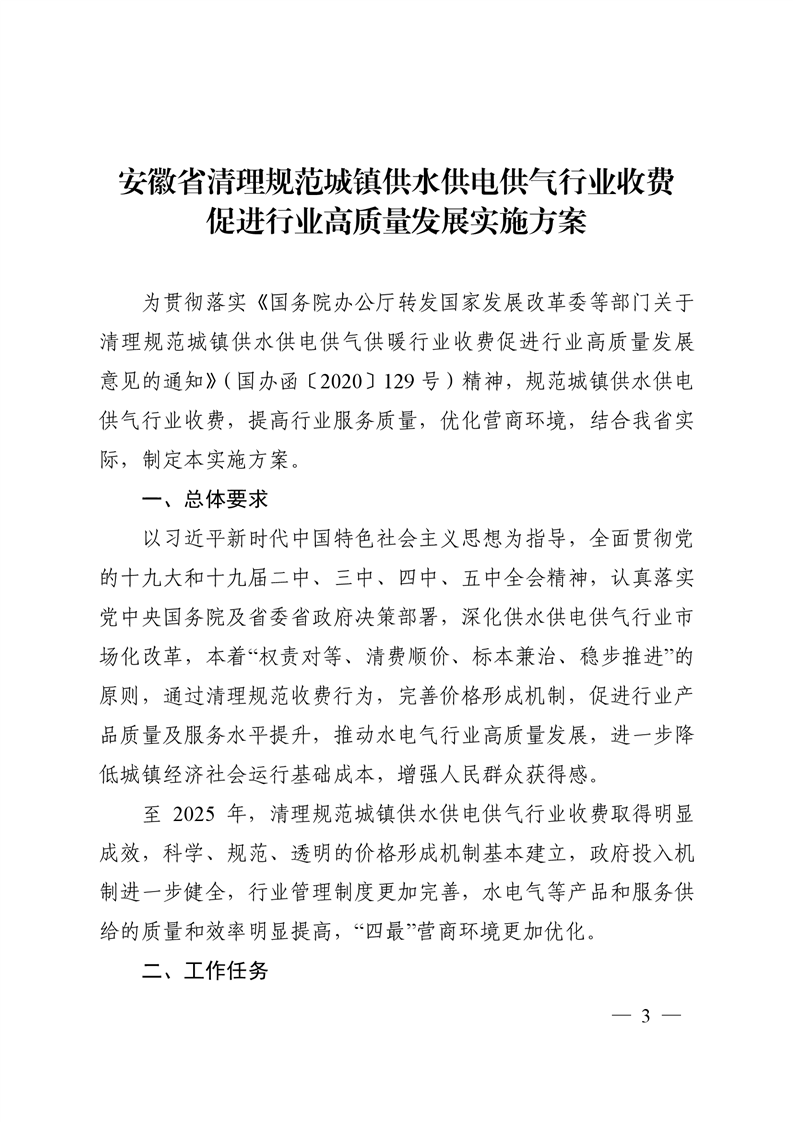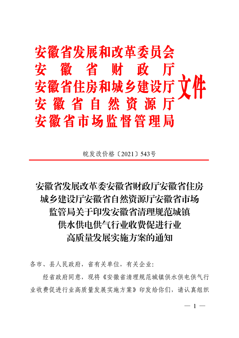安徽省发展改革委安徽省财政厅安徽省住房 城乡建设厅安徽省自然资源厅安徽省市场 监管局关于印发安徽省清理规范城镇 供水供电供气行业收费促进行业 高质量发展实施方案的通知