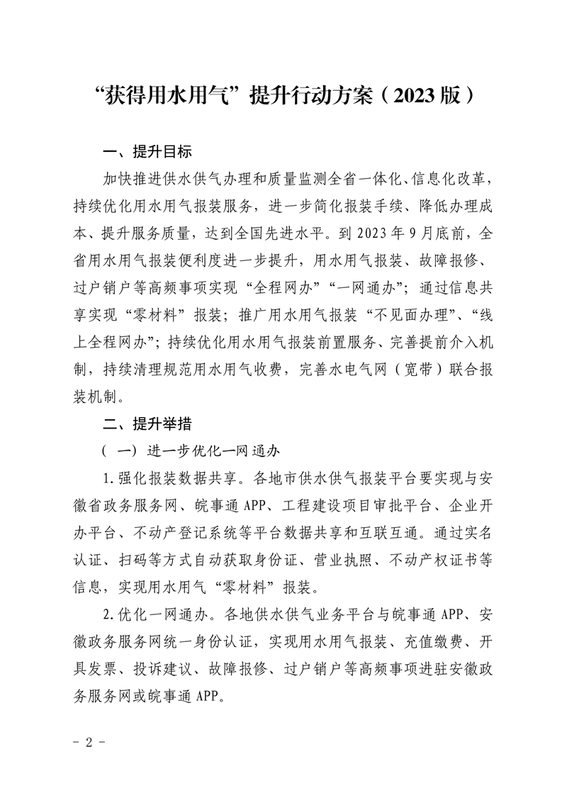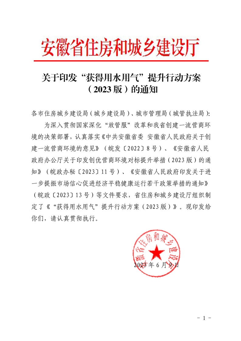 安徽省住建厅-关于印发“获得用水用气”提升行动方案(2023 版)的通知